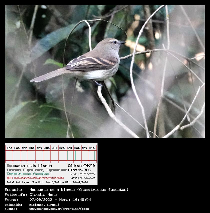 [arg74059] - Mosqueta ceja blanca - Fuscous Flycatcher - (Cnemotriccus fuscatus)