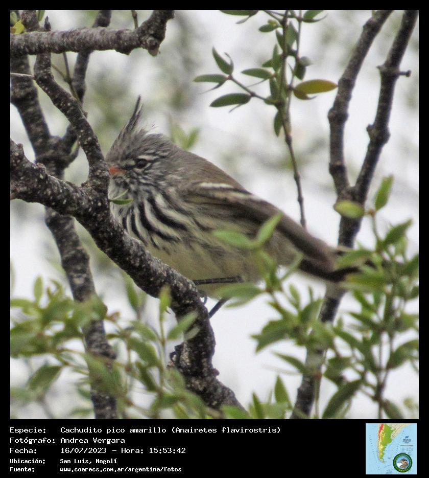 [arg74019] - Cachudito pico amarillo - Yellow-billed Tit-Tyrant - (Anairetes flavirostris)