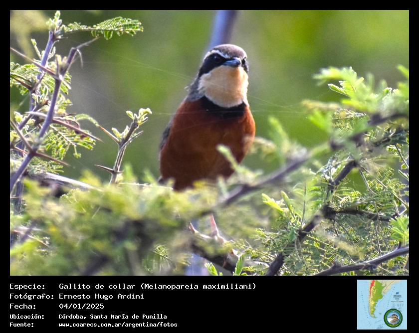 [arg68001] - Gallito de collar - Olive-crowned Crescentchest -