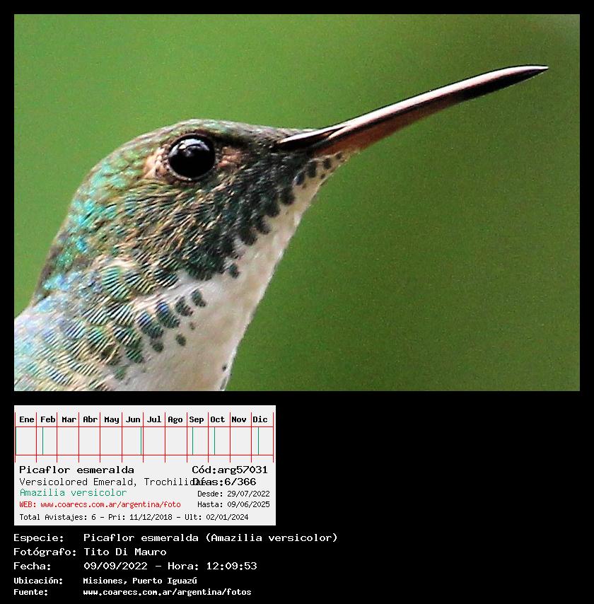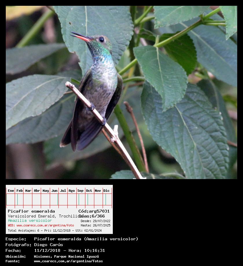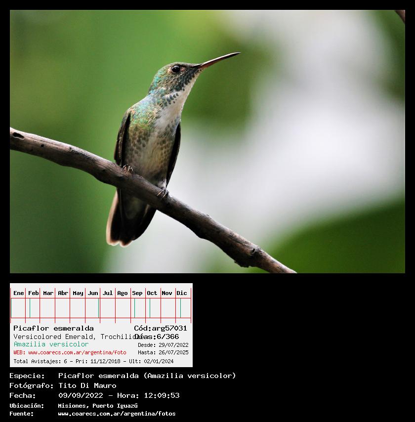 [arg57031] - Picaflor esmeralda - Versicolored Emerald - (Amazilia versicolor)