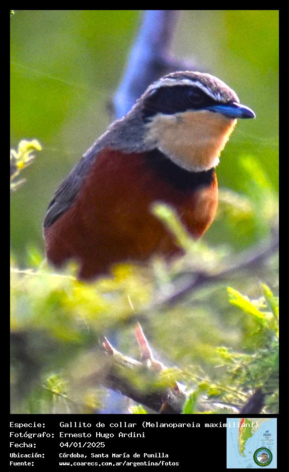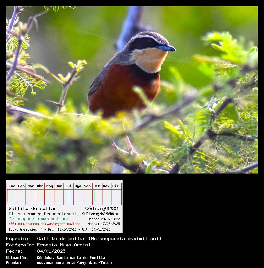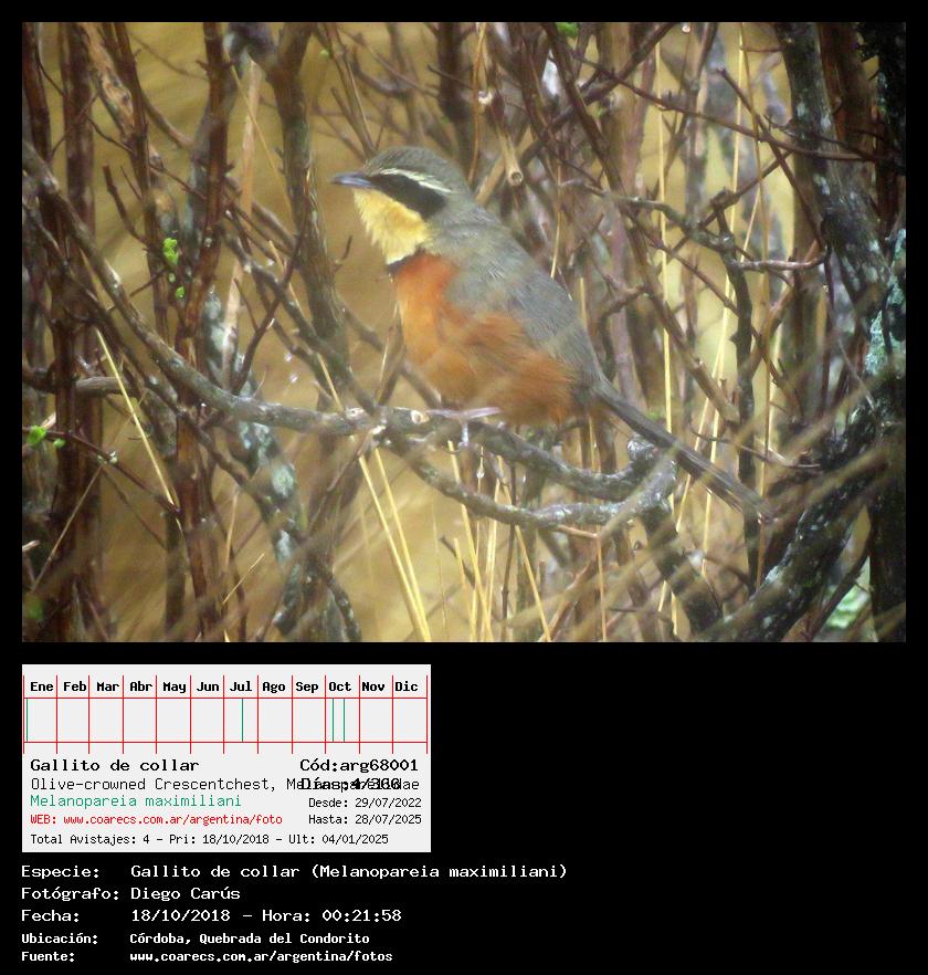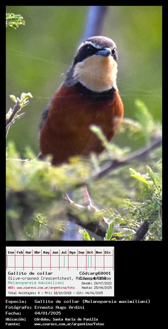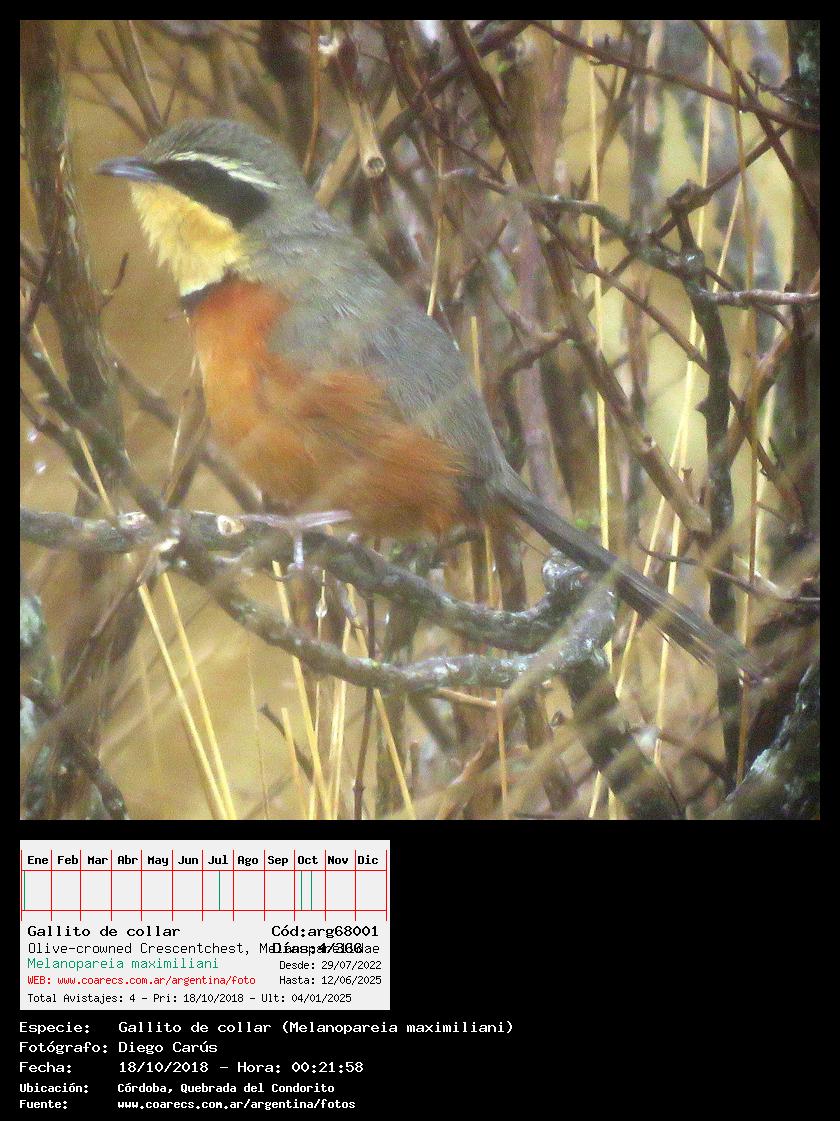[arg68001] - Gallito de collar - Olive-crowned Crescentchest -