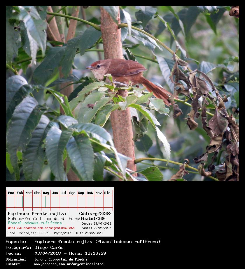 [arg73060] - Espinero frente rojiza - Rufous-fronted Thornbird -