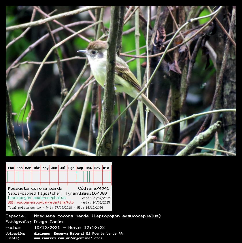 [arg74041] - Mosqueta corona parda - Sepia-capped Flycatcher - (Leptopogon amaurocephalus)