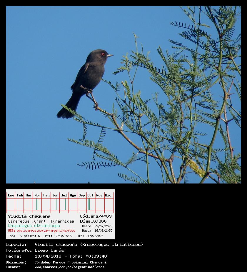 [arg74069] - Viudita chaqueña - Cinereous Tyrant - (Knipolegus striaticeps)