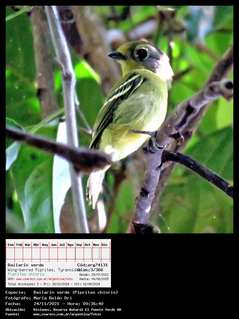 [arg74131] - BailarÃn verde - Wing-barred Piprites -