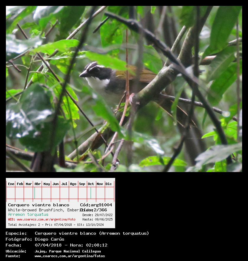[arg91004] - Cerquero vientre blanco - White-browed Brushfinch -