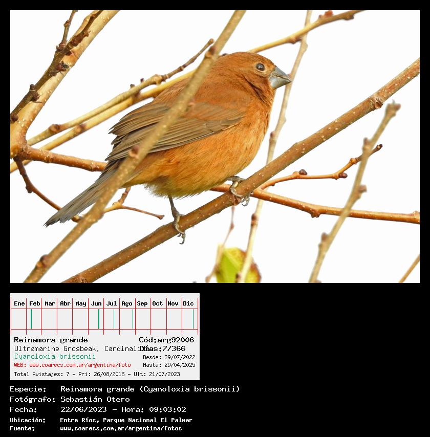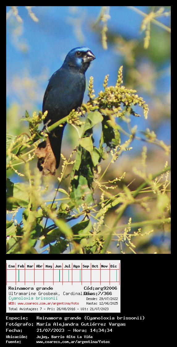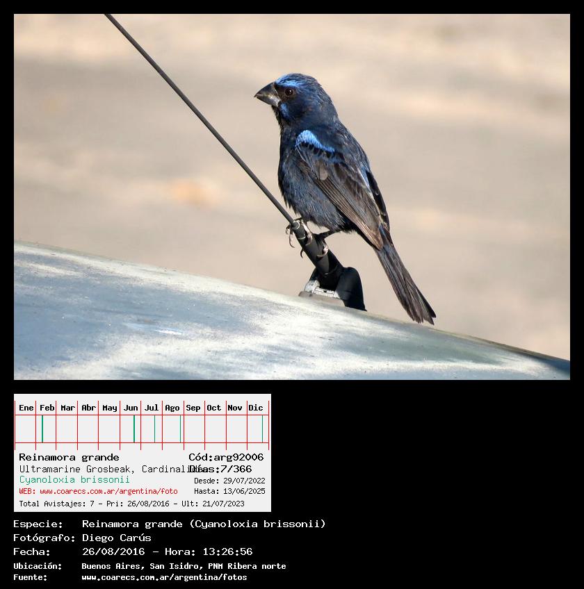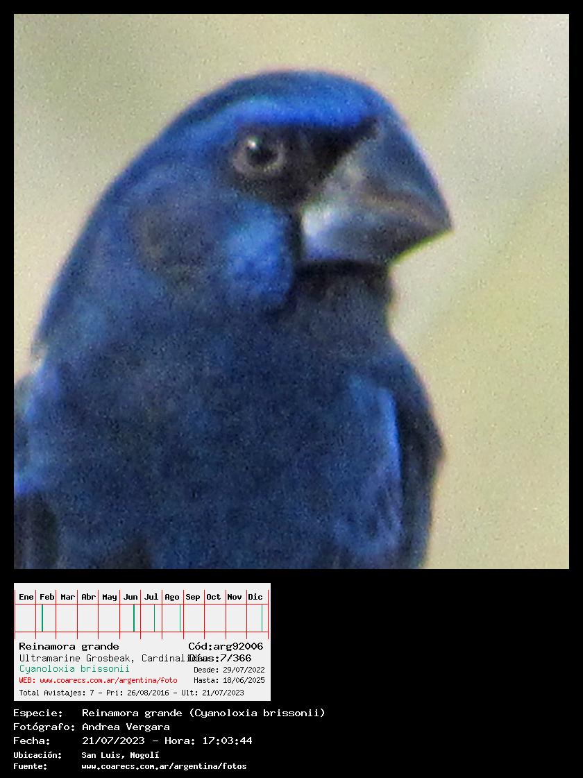 [arg92006] - Reinamora grande - Ultramarine Grosbeak - (Cyanoloxia brissonii)