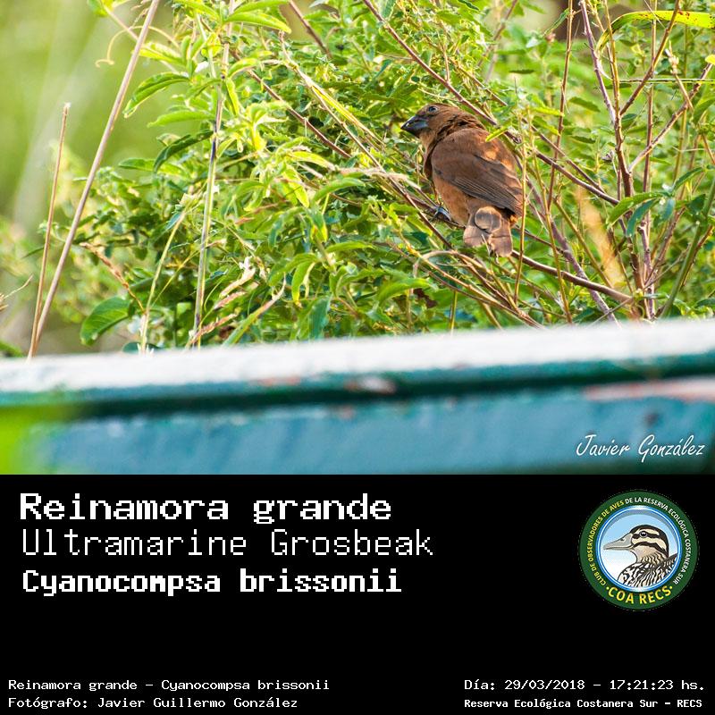 | 22 |  | 8304 - Reinamora grande - (Cyanocompsa brissonii) |