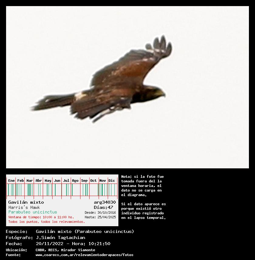 Diagrama temporal desde el año 2016, con avistajes entre las 10:00 hs. y 11:00 hs. (con o sin foto)