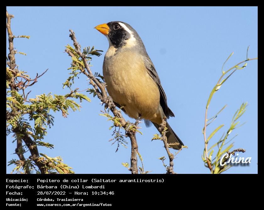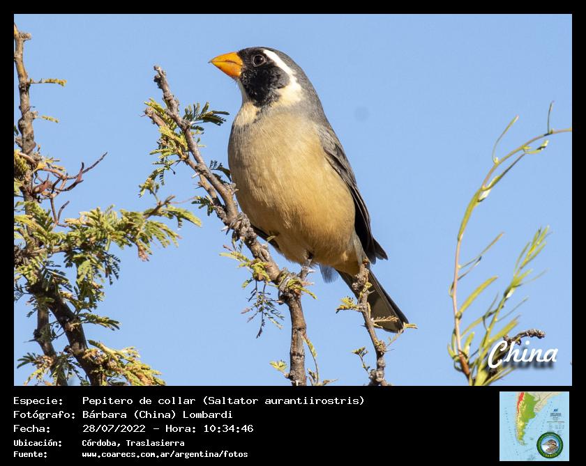 [arg90099] - Pepitero de collar - Golden-billed Saltator - (Saltator aurantiirostris)