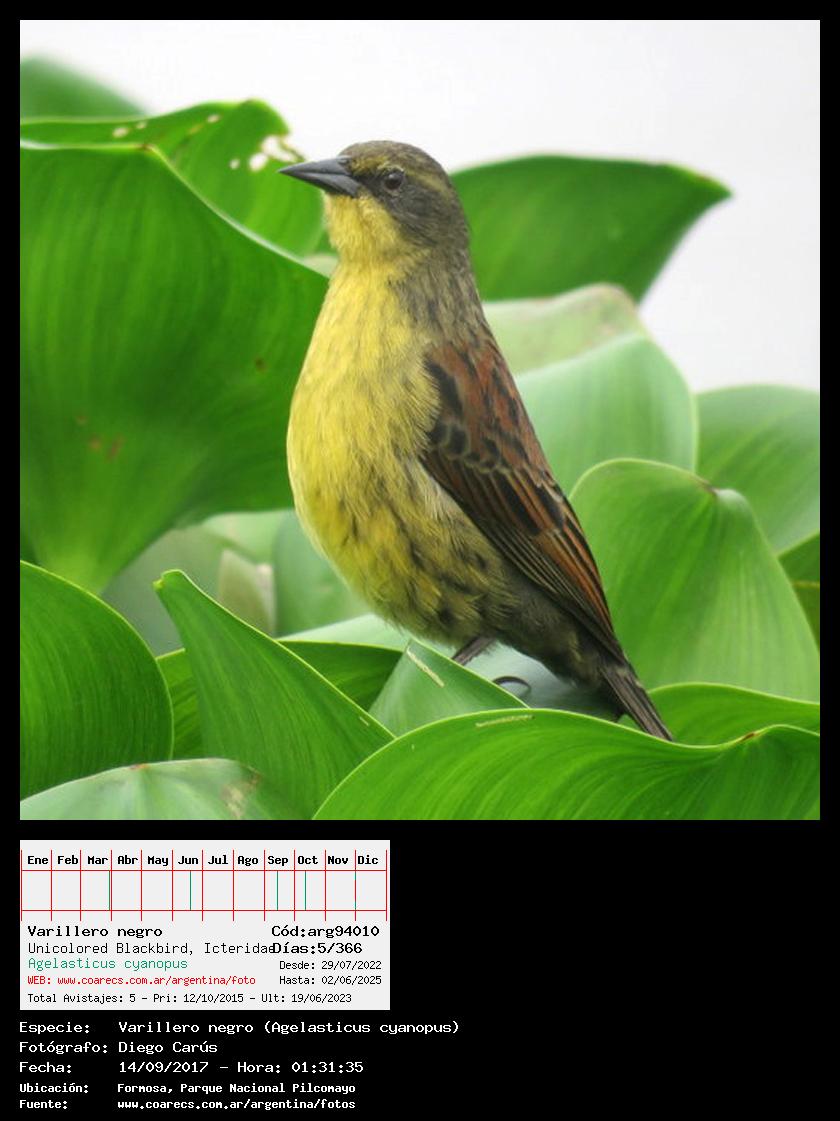 [arg94010] - Varillero negro - Unicolored Blackbird -
