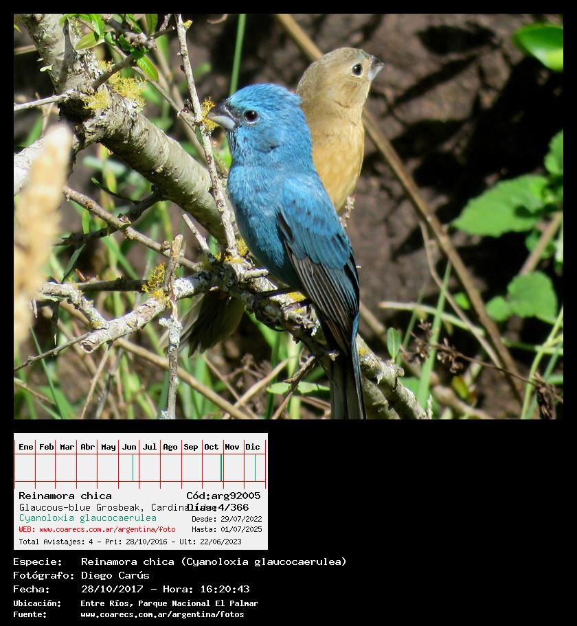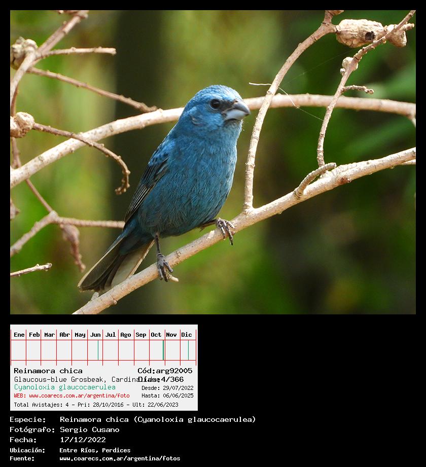 [arg92005] - Reinamora chica - Glaucous-blue Grosbeak -