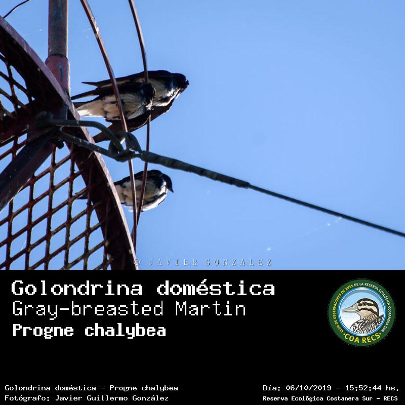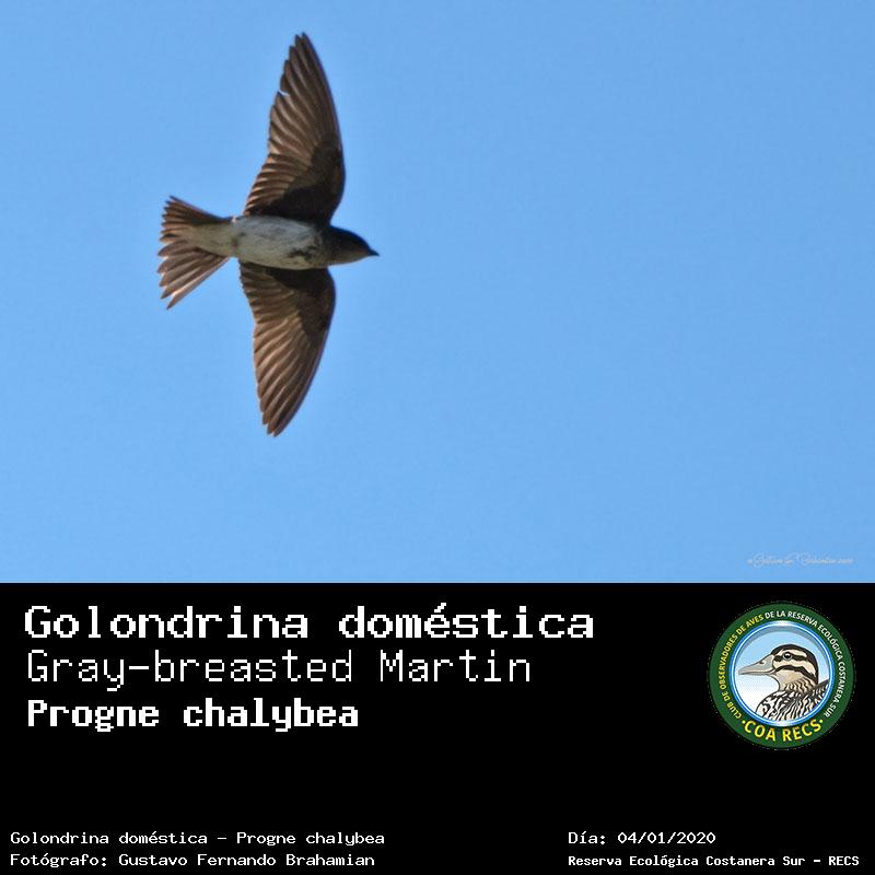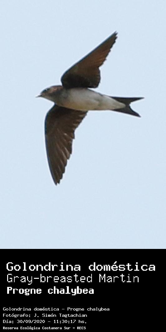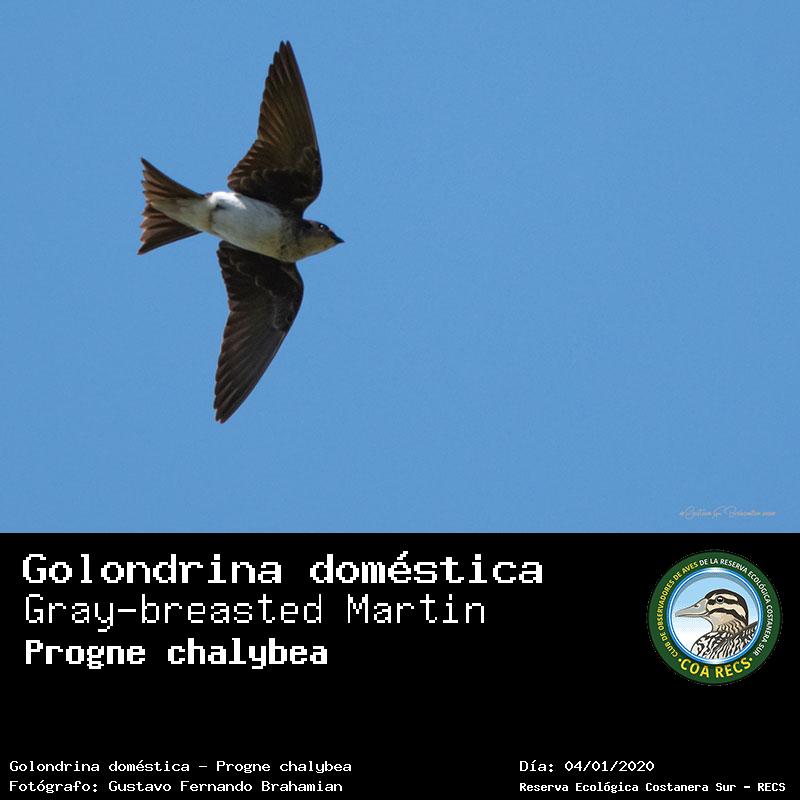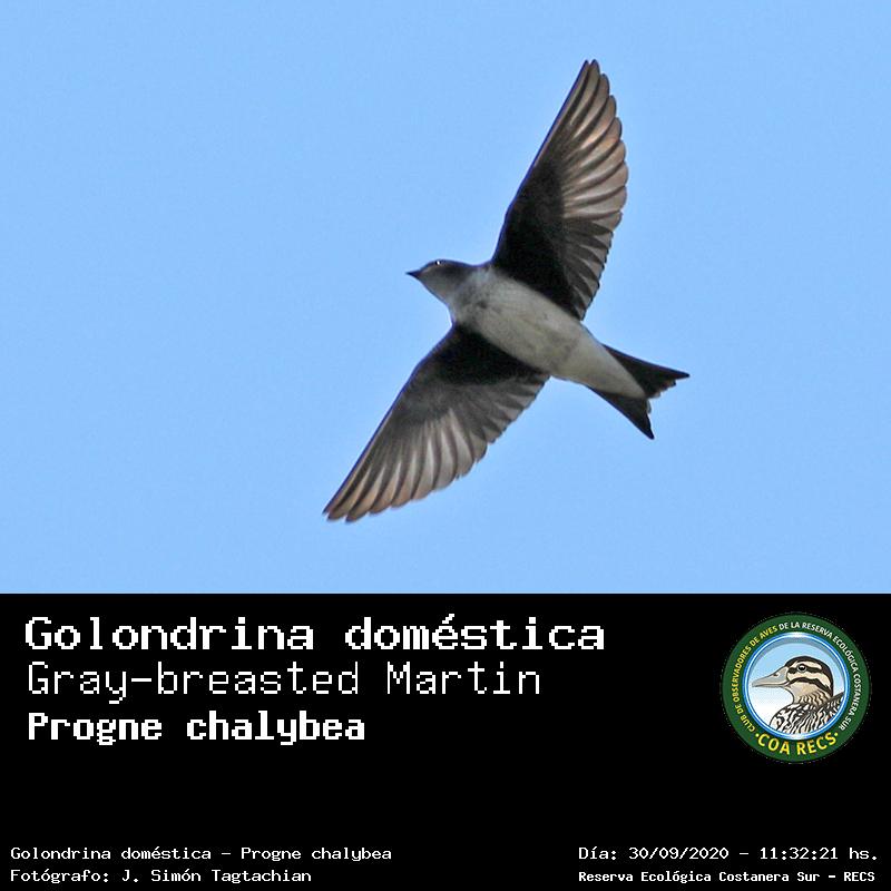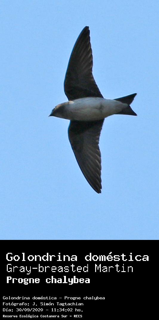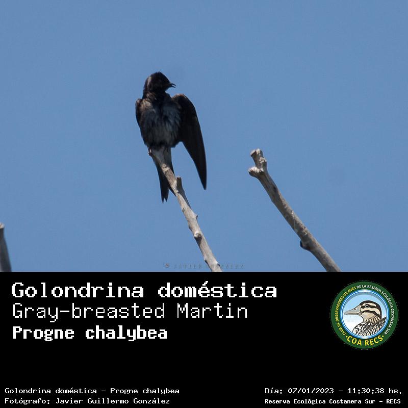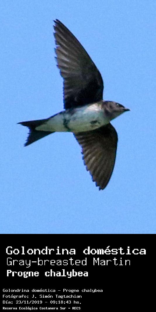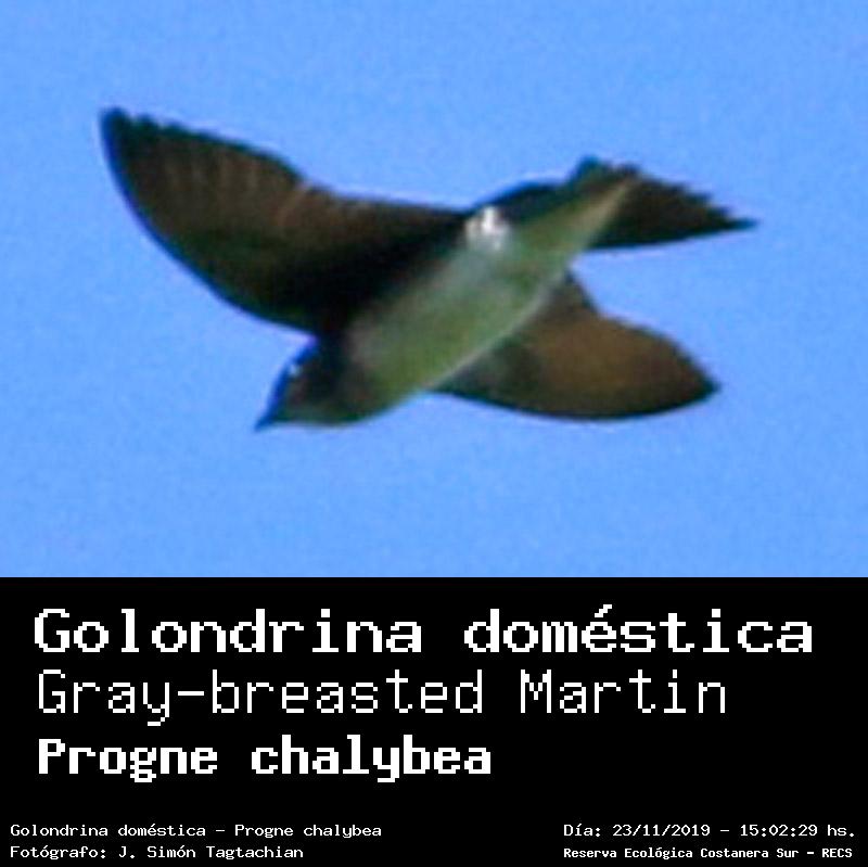 Golondrina doméstica - (Progne chalybea) Fotos desde el año 2014 al 2025Todas las fotos tomadas en la Reserva Ecológica Costanera Sur - RECSFoto número 101