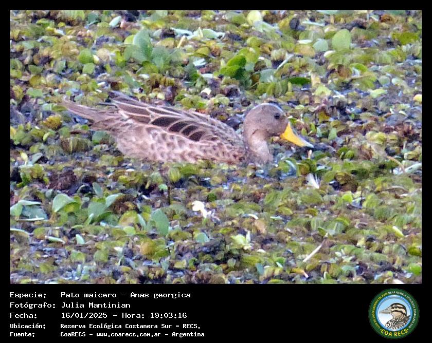 Pato maicero - (Anas georgica) Fotos desde el año 2014 al 2025Todas las fotos tomadas en la Reserva Ecológica Costanera Sur - RECSFoto número 1